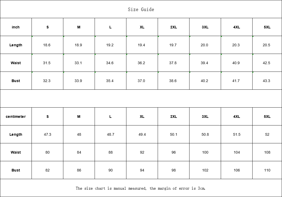 inch | S | M | L | XL | 2XL | 3XL | 4XL | 5XL |